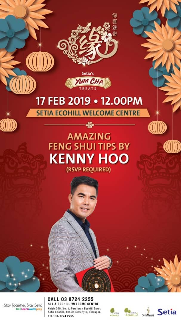 We are delighted to invite you to an exclusive talk by Master Kenny Hoo at 12pm on 17 February 2019. He will be providing a general outlook for 2019 as well as feng shui tips to make your living environment more auspicious. Entry is free but places are limited so RSVP to book your seat immediately.