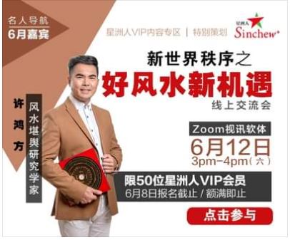 风水堪舆研究学家许鸿方将在线上与星洲人VIP进行交流,主题为“新世界秩序之好风水新机遇”。参与者得以在交流会中询问对于风水学术的疑虑。
